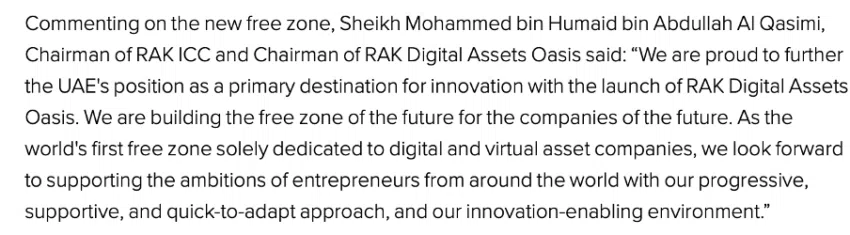El presidente de RAK ICC y presidente de RAK Digital Assets Oasis apoyó la creciente cohorte de cripto. Destacando aún más la necesidad de tales zonas. Tal iniciativa sirve para impulsar la tasa de adopción y contribuir al liderazgo de la región como centro potencial.
