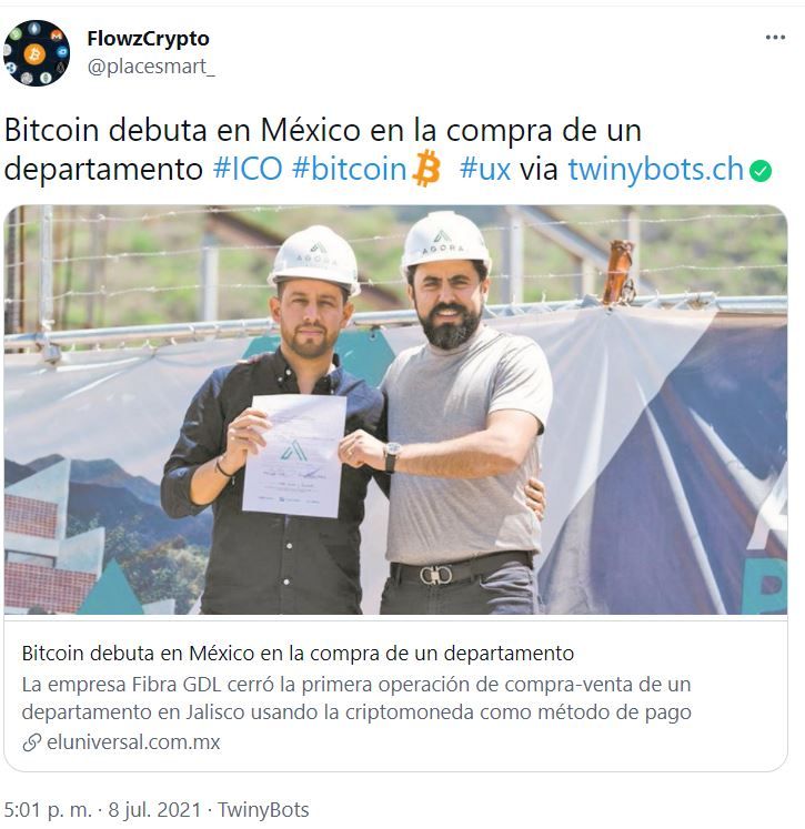 Fibra GDL explicó que decidió aceptar de última hora la transacción en Bitcoin como “método alternativo de pago”. La empresa se especializa en la construcción de inmuebles de todo tipo y su área de operación se concentra en Guadalajara, Jalisco.