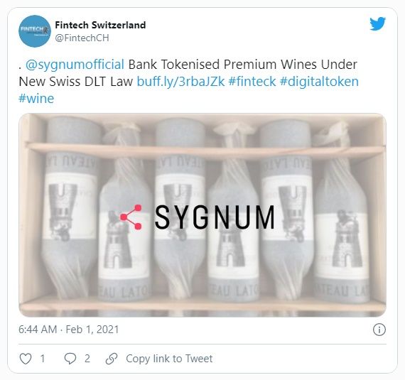 Con la nueva ley suiza que entra en vigencia hoy, 1 de febrero de 2021, Sygnum ha creado una plataforma totalmente compatible que facilita trading de valores tokenizados. Esta es la primera tokenización de activos de Sygnum en la categoría de arte y coleccionables, un sector que la clientela favorece mucho, según un comunicado de prensa del 1 de febrero.