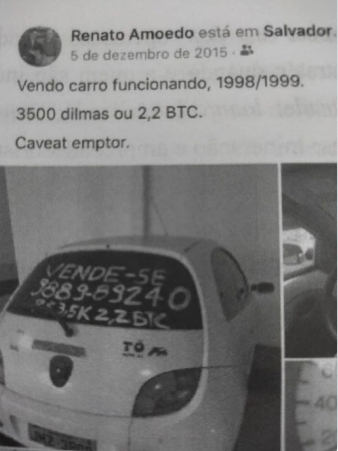 Brasileño vendió su Ford Ka por 2 Bitcoin en 2015 y acumula ganancias del 28,000%