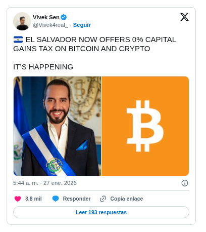 El Salvador refuerza su posición como país Bitcoin al suprimir el impuesto sobre las ganancias de capital basadas en Bitcoin y criptomonedas. La medida se dirige a inversores globales y exime de impuestos a extranjeros que aporten más de 3 BTC.
