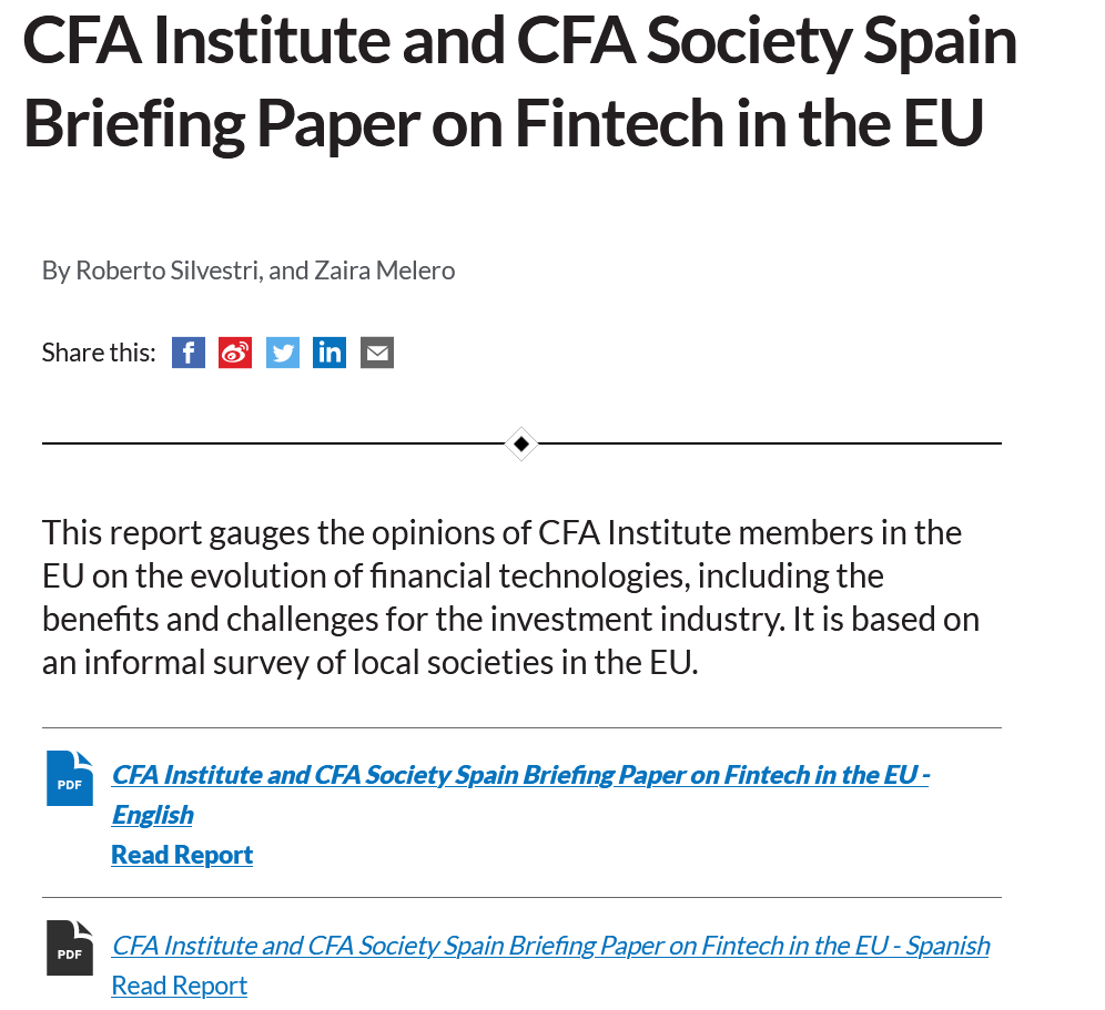 En la encrucijada de una revolución financiera, el CFA Institute y CFA Society Spain presentan un intrigante informe que revela las predicciones y desafíos que las FinTech y la tecnología blockchain imponen en el sector financiero europeo.
