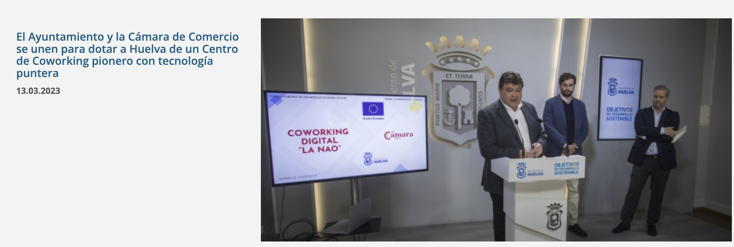 El Ayuntamiento de Huelva y la Cámara de Comercio onubense han presentado esta semana un nuevo y novedoso espacio pionero de trabajo compartido llamado Centro de Coworking Digital ‘La Nao’. El mismo está diseñado para que los emprendedores onubenses puedan enfrentar la transformación digital. El Centro busca contribuir a la formación de profesionales en áreas como la IA, el metaverso y la tecnología 5G.