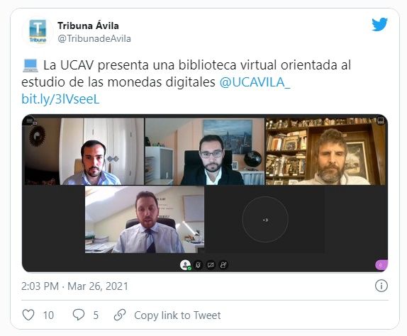El 26 de marzo del 2021, la Universidad Católica de Ávila (UCAV) anunció la creación de la primera biblioteca virtual de España orientada al estudio sobre monedas digitales de bancos centrales (CBDC) con el fin de divulgar a nivel mundial la mayor información posible sobre estas nuevas tecnologías.