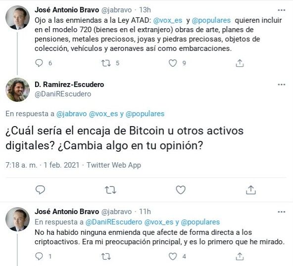 Sponsored SponsoredAl darse a conocer la publicación, el economista tributario José Antonio Bravo fue consultado en Twitter por el Editor jefe de BeInCrypto en español, Daniel Ramirez-Escudero, para que ofreciera una breve valoración al respecto: