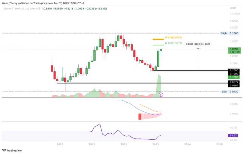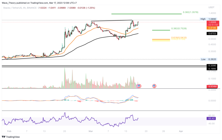 Si el precio de Stacks experimenta ahora una corrección, los soportes significativos de Fib ya están esperando en alrededor de los 0.75 dólares y los 0.54 dólares.