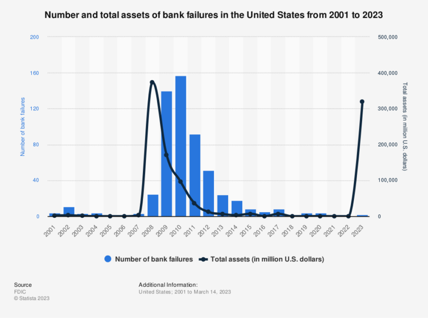 Sin embargo, con los gobiernos y los bancos centrales expandiendo la oferta monetaria sin precedentes, las quiebras bancarias se han convertido en una rareza.