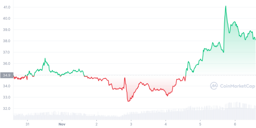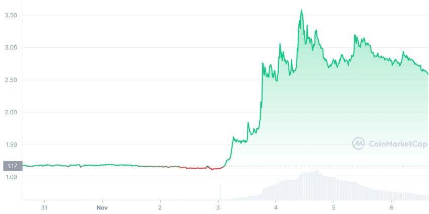 El token continuó su rally masivo que comenzó a finales de octubre y ha visto aumentar su precio de 0.050396 dólares el 20 de octubre a los 0.222717 dólares actuales. Esto representa ganancias del 351% en los últimos 14 días.