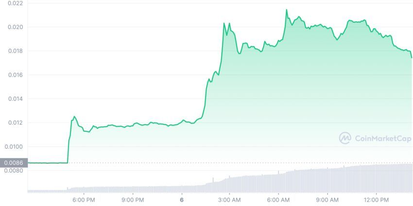 SponsoredEl repunte comenzó el 24 de octubre cuando estaba en 0.006837 dólares. Actualmente cotiza en 0.01799 dólares y parece estar listo incluso para subir más si su trayectoria de los últimos 15 días se mantiene.