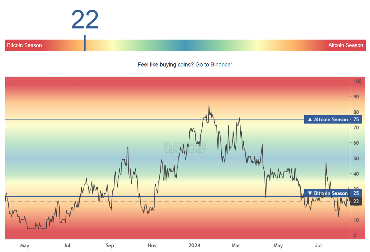 Según el Altseason Index, la llegada del esperado crecimiento de las altcoins se retrasará aún más. Esto se debe a que el mercado actualmente está en una temporada de Bitcoin, dado el reciente aumento en el dominio de BTC.