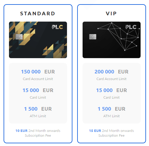 Por ejemplo, el límite mensual de las tarjetas PLC Standard es de 150,000 euros, mientras que para las tarjetas PLC VIP alcanza los 200,000 euros.