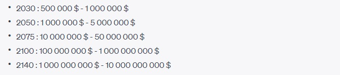 Cada avance en la adopción a gran escala podría acercar sus precios especulativos a la realidad en el futuro. Entonces, mientras varias instituciones como Ark Invest predicen la marca de 1 millón de dólares para 2030, el precio de Bitcoin podría superar los mil millones de dólares a partir de entonces.