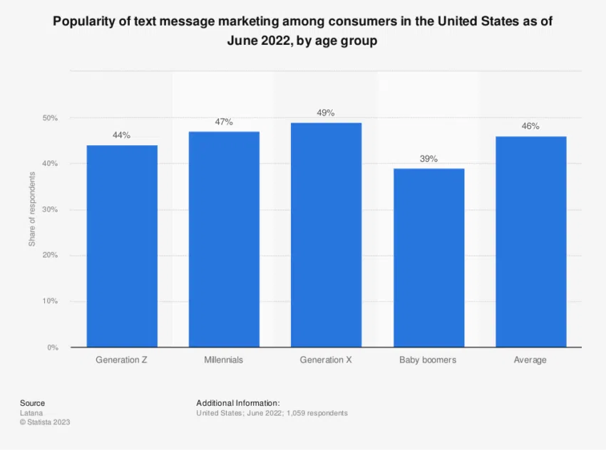 Las proyecciones recientes insinúan el comercio conversacional, que incluye el marketing por SMS, que podría crecer 29,5% y acumular un valor neto de 1,700 millones de dólares en 2023. La inmediatez y el toque personalizado de los SMS lo han devuelto al marketing, demostrando ser más eficaz que otros canales como el correo electrónico o las redes sociales. medios de comunicación.