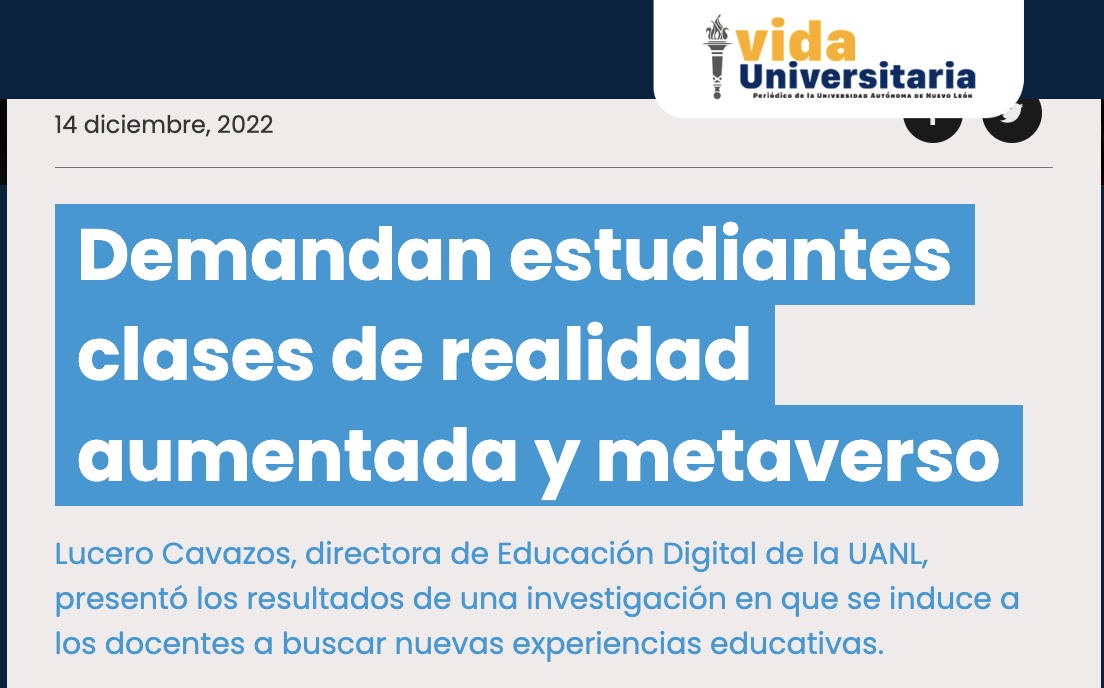 Estudiantes de la Universidad Autónoma de Nuevo León, México, (UANL) demandaron clases de realidad aumentada y metaverso, según una investigación interna realizaba por parte de los docentes, la cual fue presentada en el 5 Congreso Internacional de Investigación Educativa RIE-UANL 2022.