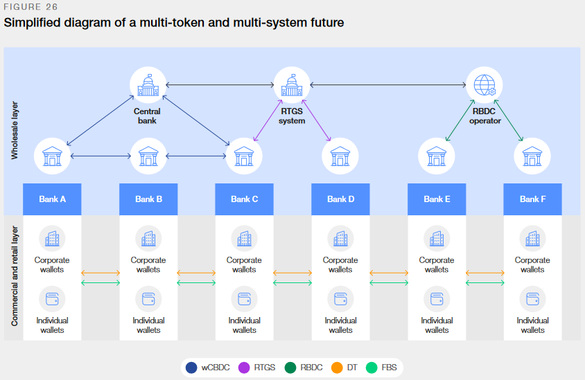 Es decir, una CBDC mayorista tiene la opción de proporcionar solo el medio de liquidación (o medio de cambio) pero no la infraestructura interna de pagos.