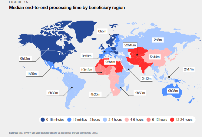 Por ejemplo, en el caso de la liquidación transfronteriza de valores, la mayoría de los sistemas de liquidación bruta en tiempo real (RTGS, por sus siglas en inglés) tienen horas de operación limitadas. El BPI ha identificado una ventana de cinco horas (6-11 am GMT) con una superposición máxima.