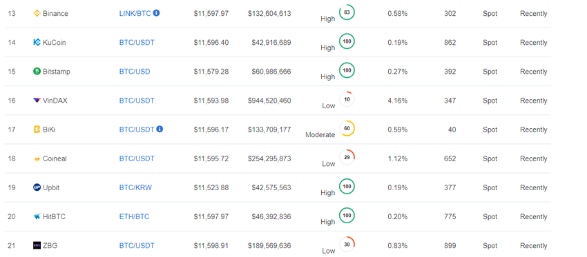 SponsoredLos volúmenes de trading más grandes colocan a los exchanges más arriba en la lista para sitios como CoinGecko y CoinMarketCap. El rango más alto genera más tráfico. CoinMarketCap utiliza su propio algoritmo para abordar la validez y confiabilidad tanto en los volúmenes de operaciones como en la liquidez publicados.