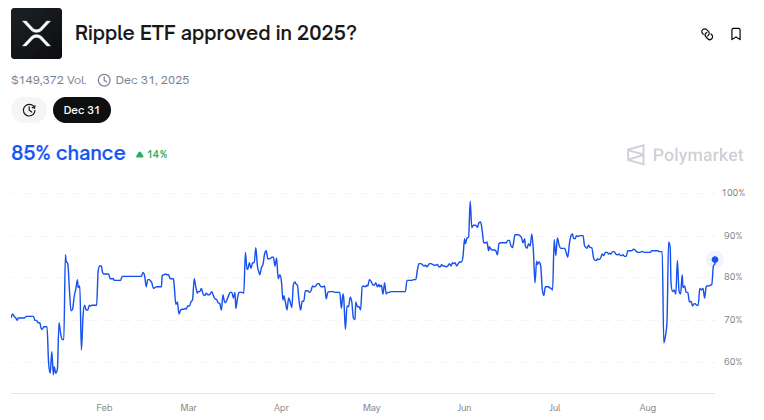 Según datos de Polymarket, la probabilidad de una aprobación de estos fondos en 2025 ha aumentado al 85%.