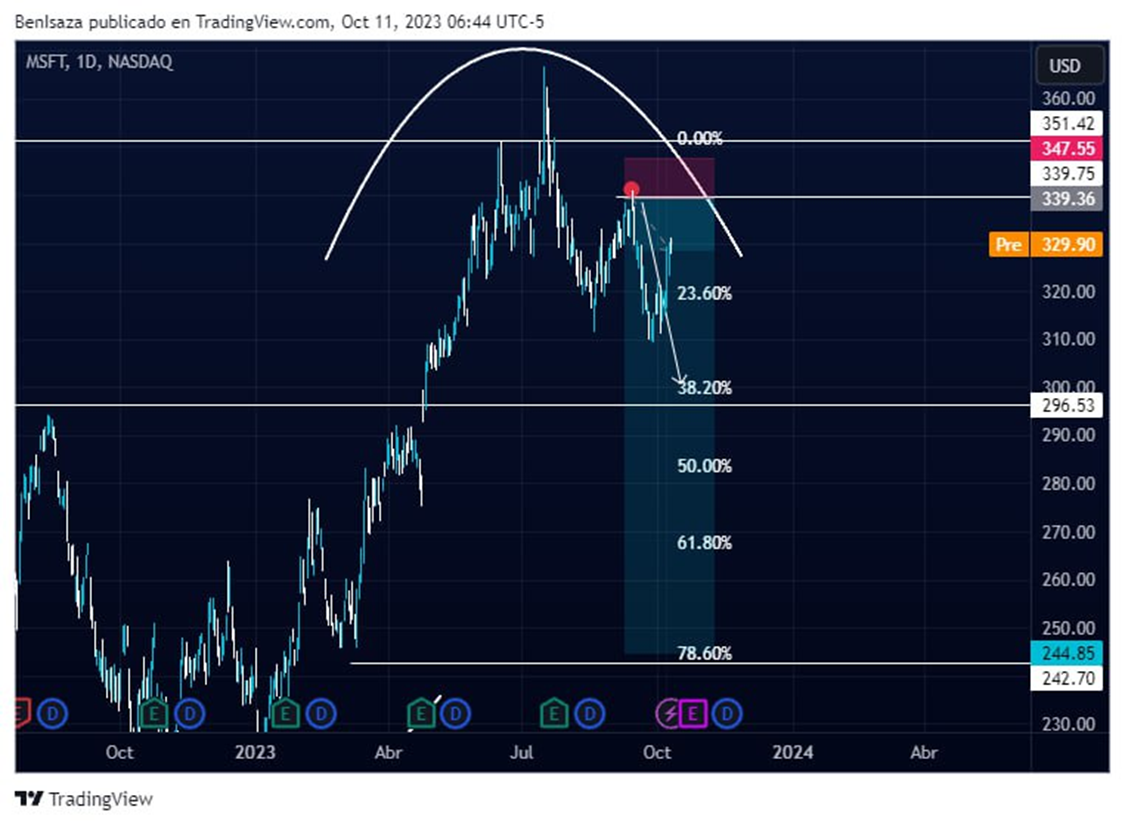 Microsoft recupera mas del 7% en ganancias. Las acciones MSFT ascienden hasta la barrera psicológica de los 330 dolares.