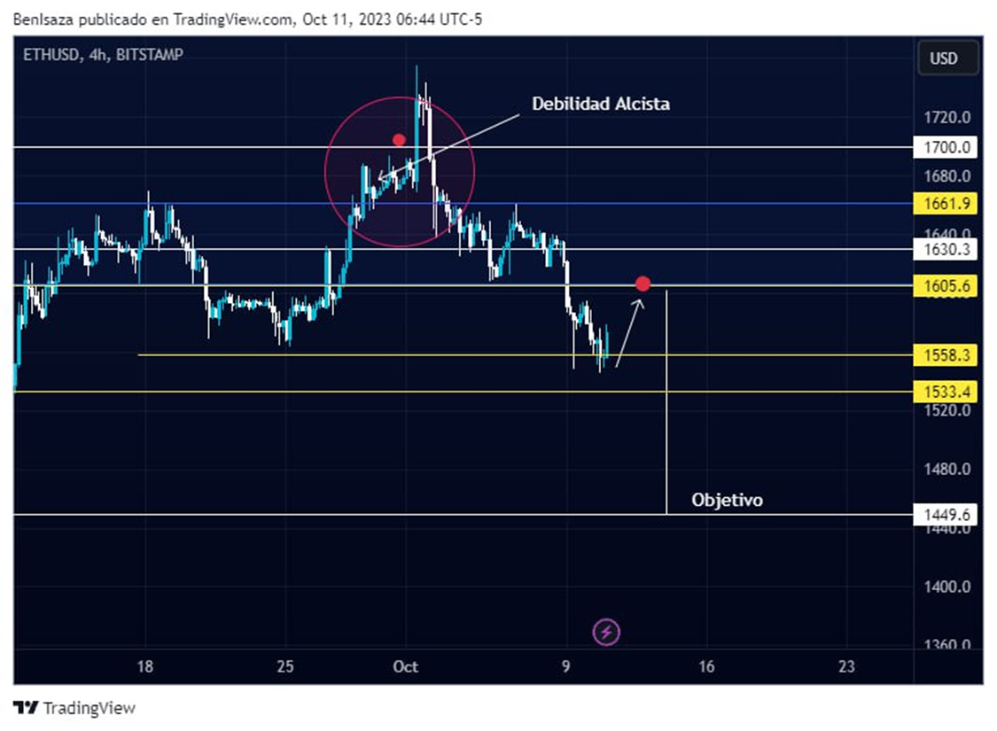 De no superar la barrera psicológica de los 1,600 dólares, confirmaría la continuidad bajista con objetivo el nivel de los 1,450 dolares.
