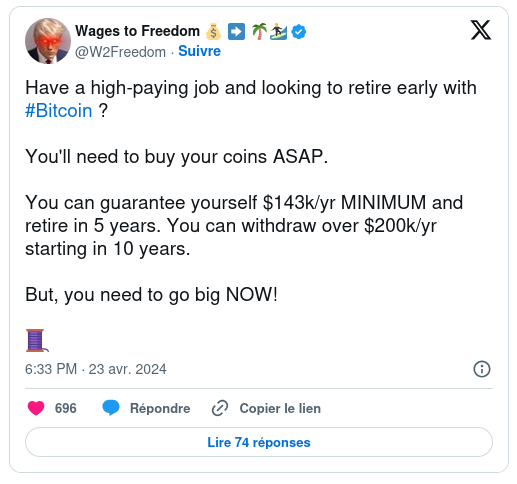 Esta vez, los expertos se muestran algo más reservados. Los traders consideran dos técnicas: comprar 1,000 ETH y esperar hasta 2030 o, como sugiere el influencer Wages to Freedom, garantizar un mínimo de 143,000 dólares anuales para jubilarse en 5 a 10 años. Esto aplica tanto a Bitcoin como a otras altcoins.