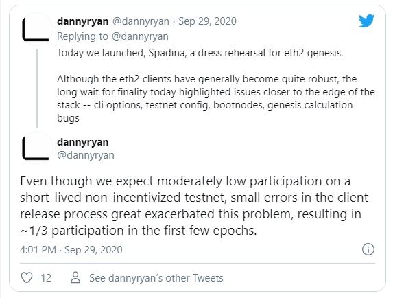 En septiembre, el desarrollador Evan Van Ness dijo que el lanzamiento de la Fase 0 estaba a solo unas semanas. Aunque el lanzamiento de Spadina experimentó un problema, es mejor experimentarlo en la testnet ahora que en la red principal más adelante.
