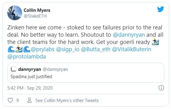 SponsoredDesafortunadamente, el desarrollador principal Danny Ryan dijo que había errores. La prueba reveló problemas con la configuración, los nodos de arranque, el cálculo y más, tuiteó: