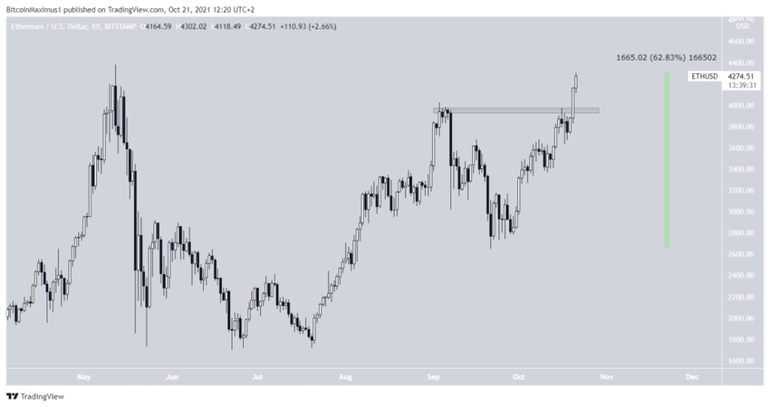 Al analizar el historial de precios de ETH, es muy posible que el reciente aumento del activo, que lo llevó a un nuevo precio récord de 4,361 dólares, ya fuera un precio de mercado en relación con la nueva actualización. Un fuerte movimiento alcista similar se vio días antes de la implementación del hard fork London.