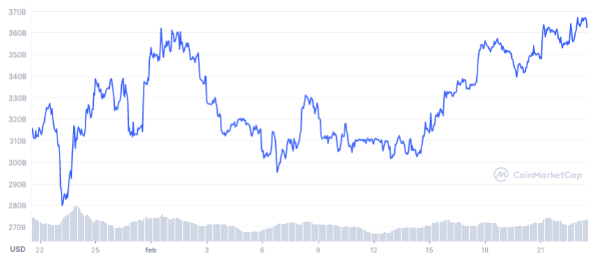 La capitalización de mercado de Ethereum ha registrado un repunte significativo durante el último mes. El pasado 24 de febrero poseía 280 mil millones de dólares. Desde entonces, ETH ha incorporado a su capitalización más de 80 millones de dólares.