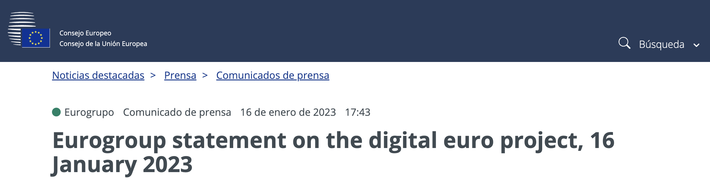 El Eurogrupo, consistente de los ministros de Economía y Finanzas de los estados miembros de la Eurozona, publicó un comunicado reafirmando su apoyo al proyecto del euro digital, al que se ve como “una oportunidad para fortalecer la autonomía estratégica de la Unión Europea”.