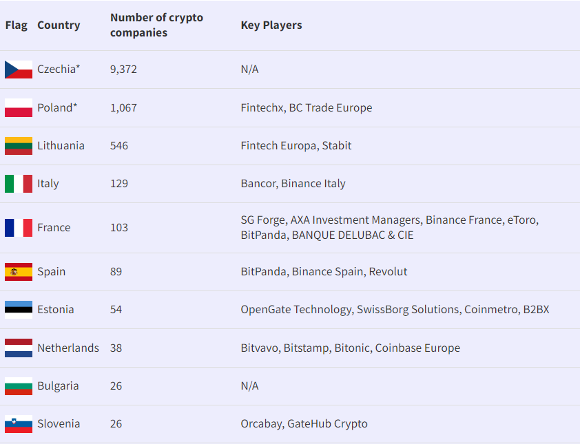 Una vez que el reglamento de MiCA entre en vigor, la clasificación de los países puede cambiar. Las personas actualmente registradas como VASP en la República Checa y Polonia no podrán obtener una nueva licencia.