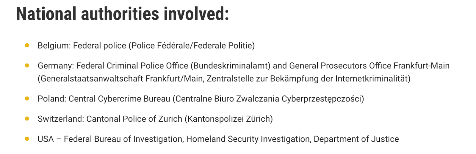 Fue una operación conjunta en la que participaron Europol y agencias de Bélgica, Alemania, Polonia, Suiza y Estados Unidos.