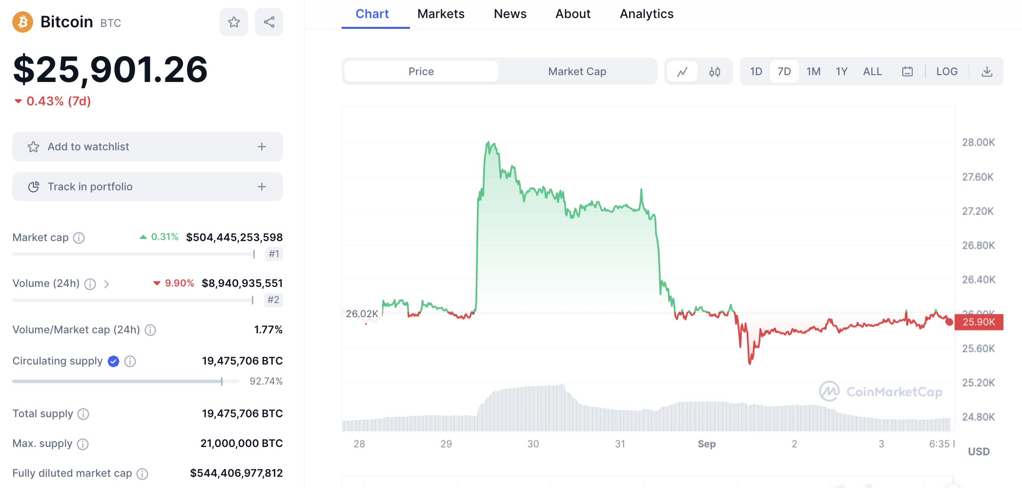 El precio de Bitcoin (BTC) en tras al fallo a favor de Grayscale subió 7,4% y subió hasta los 28,000 dólares. Sin embargo, tras el anuncio de la SEC el pasado 31 de agosto, el precio de la criptomoneda con más capitalización de mercado retrocedió hasta los 25,933 dólares, es decir, casi volvió al precio que mantenía antes del anuncio de Grayscale.