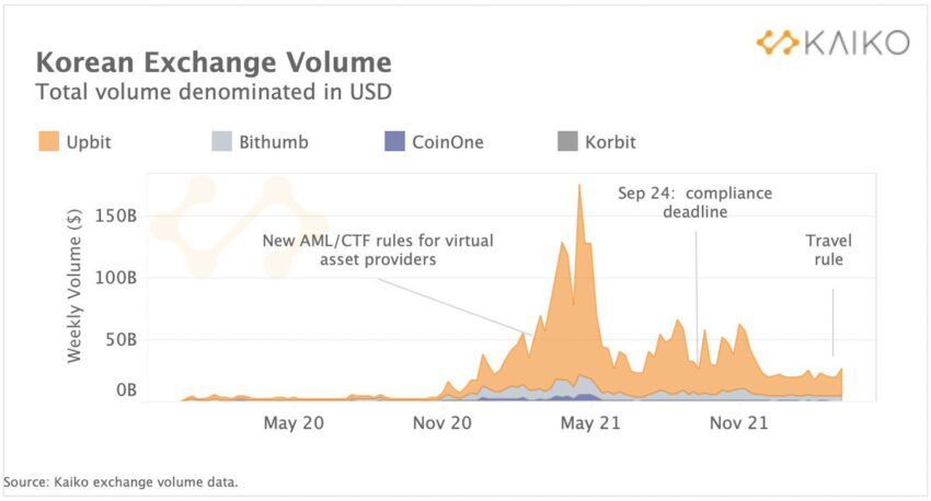La reorganización dejó a Upbit con una forma de ventaja monopolística. En cuanto a los volúmenes de negociación desde septiembre de 2021, Upbit lideró el mercado, a pesar de que otros exchanges recibieron aprobaciones regulatorias a partir de entonces.
