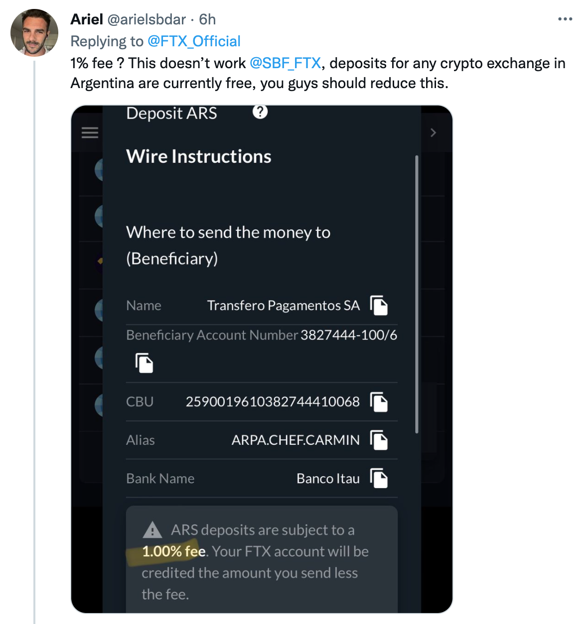 Algunos usuarios no han querido esperar para probar si la promesa de FTX es cumplido o no. Al parecer el mecanismo funciona pero con una barrera que podría ser crucial, una comisión existente por depositar los pesos argentinos.