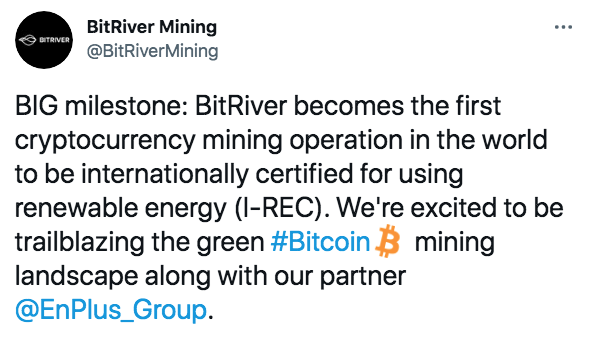 Además, recientemente BitRiver se convirtió en la primera operadora de minería de criptomonedas en el mundo en obtener la certificación internacional para el uso de energía renovable, por parte de En plus Group.