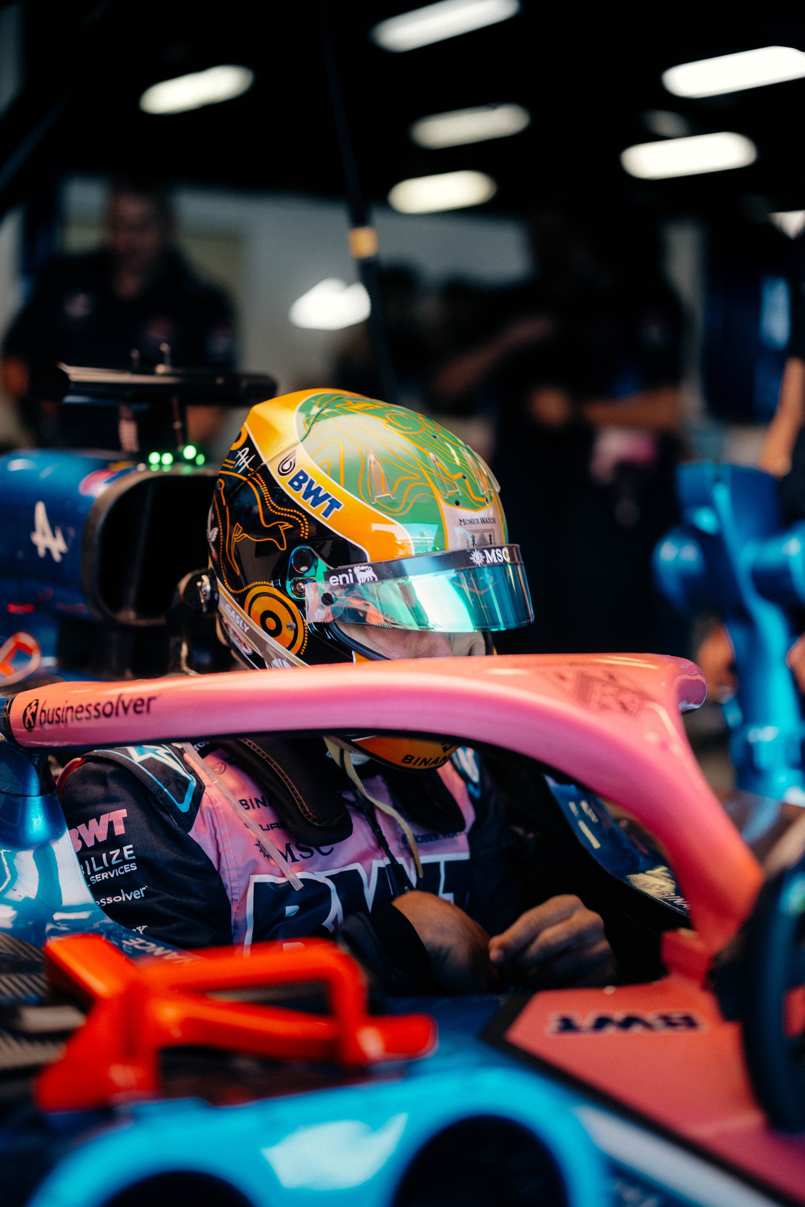 Además, la parte trasera del casco presenta los colores negro y amarillo, creando una paleta de colores vibrante que resalta en la pista. La dedicación del artista a trabajar estrechamente con las comunidades indígenas y los ancianos asegura que su trabajo sea fiel al legado cultural de Australia.