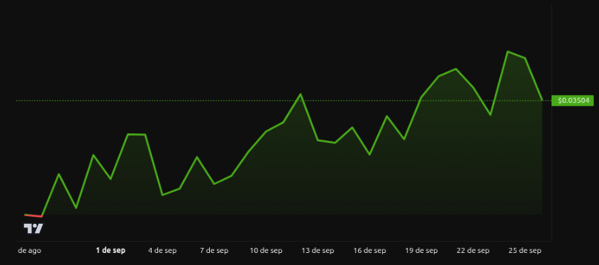 El token tiene un precio de 0.036 dólares, con un volumen de trading de 24 horas de 16,389.78 dólares. En los últimos siete días, ha ganado 6.49%, alcanzando un valor de mercado de 174,493 dólares. Sin embargo, el volumen diario cayó un 43.8% en comparación con el día anterior, lo que indica precaución entre los traders ante el riesgo deportivo.
