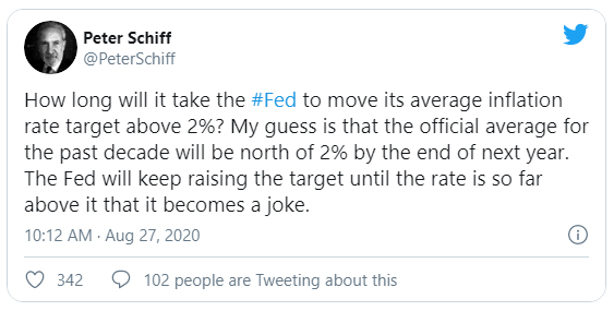 Al mismo tiempo, con las tasas de interés que han tocado fondo, algunos sienten que la Fed no tiene otra opción. El Gold Bug (y crítico de Bitcoin) Peter Schiff sugirió que esto era solo una forma velada de aumentar la inflación.