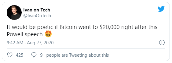 La respuesta de la Fed a esto no estaba clara en ese momento, la incertidumbre de la política de la Reserva Federal redujo los activos en todos los ámbitos, incluido Bitcoin. Algunos en cripto se han vuelto optimistas con Bitcoin como resultado del discurso del presidente Powell.