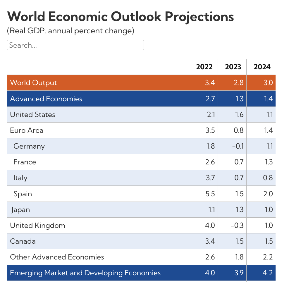 Se espera que las economías avanzadas experimenten una disminución significativa en el crecimiento, pasando del 2,7% en 2022 al 1,3% en 2023.