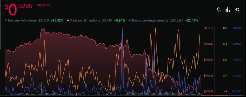 Este sentimiento también se repite cuando se considera la caída de las redes sociales y la tracción del compromiso social de la plataforma. Si bien ha habido un número creciente de menciones sociales en los últimos tres días, la participación social ha tenido una tendencia a la baja durante el mismo período, alcanzando una serie de mínimos más bajos.