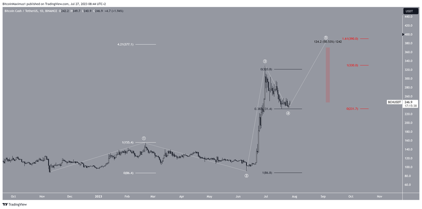 A pesar de esta predicción alcista del precio de BCH, caer por debajo de 233 dólares significará que el precio de BCH todavía se está corrigiendo dentro de la cuarta onda. En ese caso, se espera una caída a 200 dólares antes de un eventual rebote y un nuevo máximo anual.