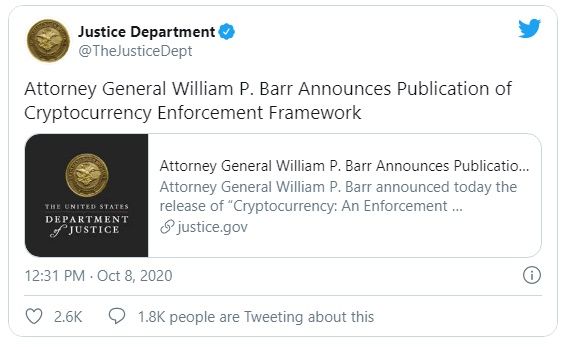 El informe fue anunciado hoy, jueves 8 de octubre, por el fiscal general William P. Barr. Un comunicado de prensa publicado por el Departamento de Justicia de Estados Unidos detalla el nuevo marco.