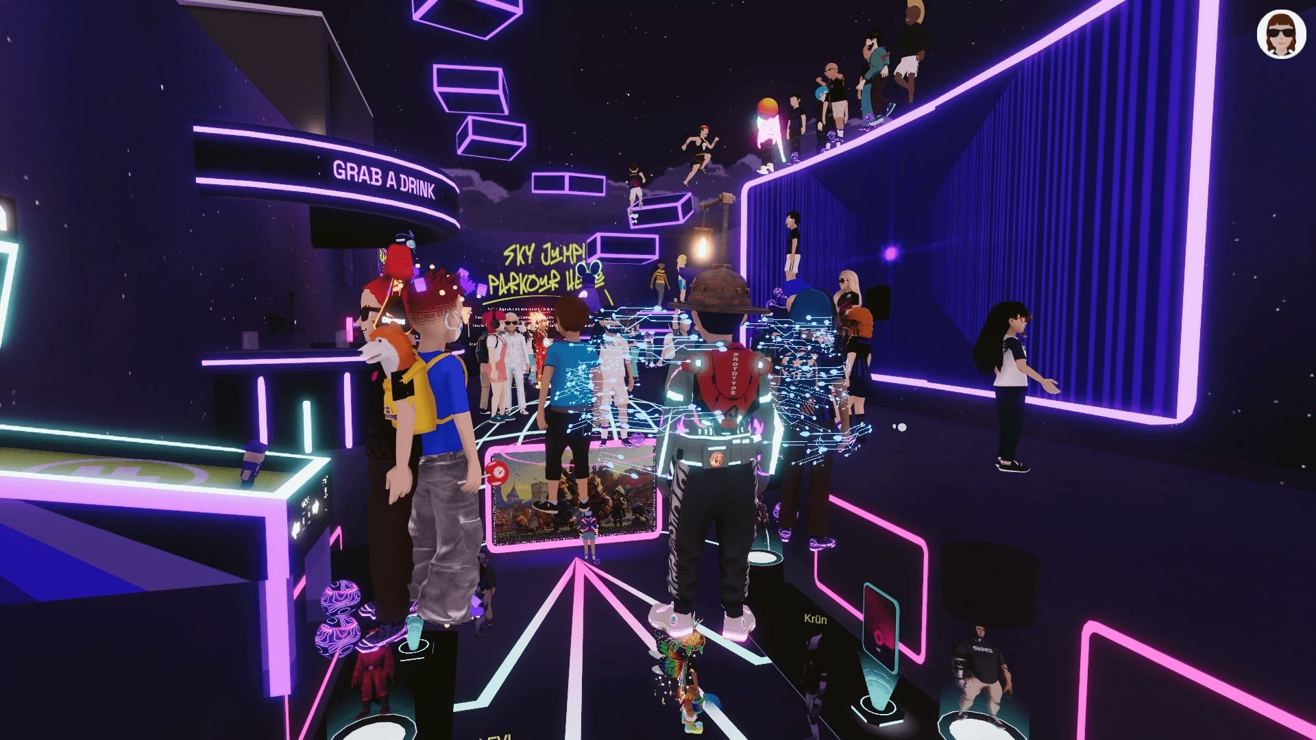 En el tercer piso, se encuentra un espacio enfocado al entretenimiento con juegos, un DJ y hasta un bar con bebidas digitales. En este piso, los fans bailaron y jugaron a minigames participando en un leaderboard por premios como: tarjetas de Riot Points, Packs de Minecraft Premium y cuentas de Discord Nitro.