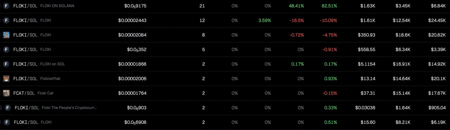 La advertencia surge en medio de la proliferación de monedas meme que imitan a Floki en las redes Solana y Base. Una rápida búsqueda en GeckoTerminal revelará varias monedas meme con Floki como parte de su nombre.