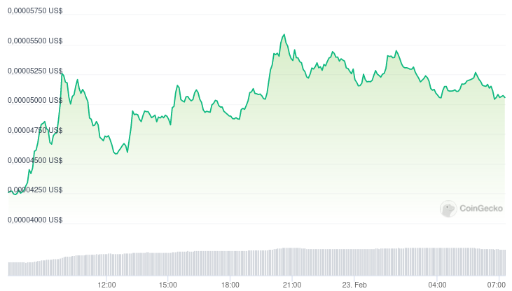Sin embargo, se encuentra un 85% por debajo de su máximo histórico de 0.00033651 dólares registrado en noviembre de 2021.