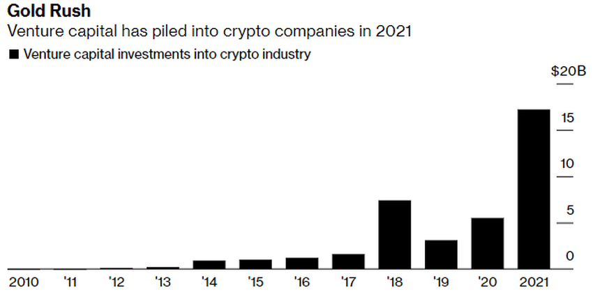 Los fondos de capital de riesgo han invertido un récord anual en el mercado de las criptomonedas, registrando más de 17 mil millones de dólares en 2021.