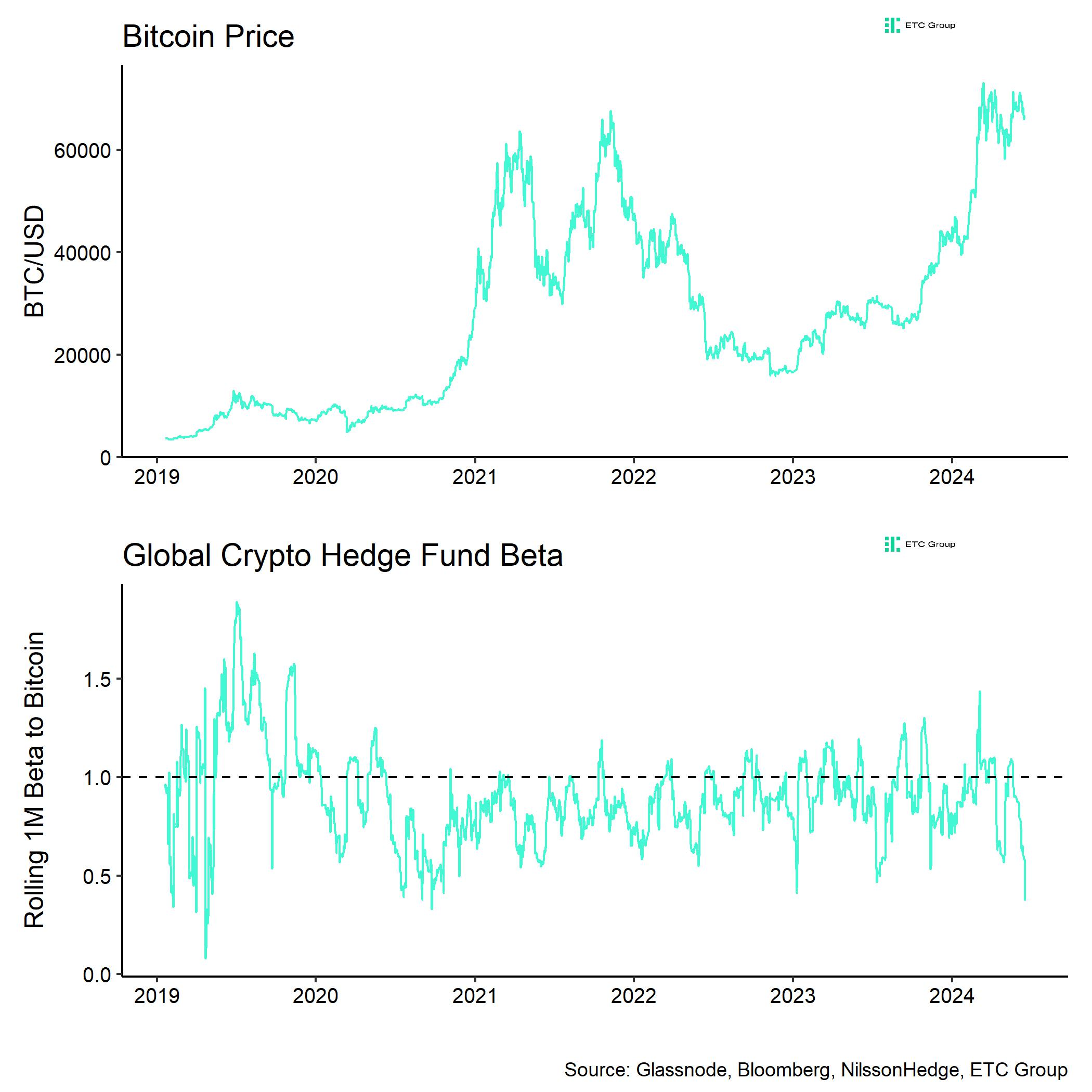“Los fondos de cobertura criptográficos también hacen apuestas neutrales al mercado a través de operaciones básicas, por ejemplo. Una beta baja pero positiva implica que los fondos de cobertura criptográficos globales siguen siendo netos largos en conjunto, pero significativamente menos”, explicó.