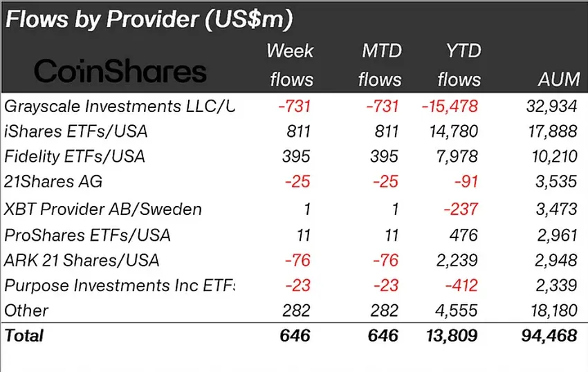 El momento se alinea con un informe de CoinShares que señala “signos de moderación del entusiasmo por los ETF”. La semana pasada, la entrada de productos de inversión en activos digitales, incluidos los ETF de Bitcoin al contado aprobados por Estados Unidos, ascendió a sólo 646 millones de dólares.